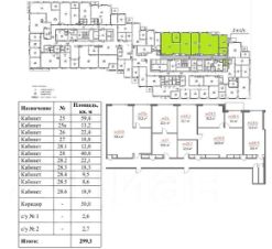 Описание помещения: Офисное помещение готовое к въезду. Состоит из 16 кабинетов, 4 санузла. Выполнена качественная офисная отделка.