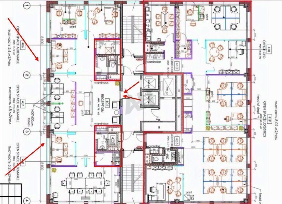 Офис расположен на 4 этаже 8-этажного здания.