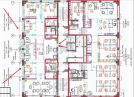 Рассчитано на размещение от 15 до 40 рабочих мест, в зависимости от потребностей. Планировка смешанная, включает переговорную комнату, собственные сан/узел и обустроенная кухня с мебелью.