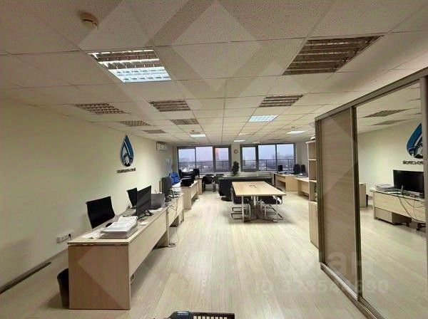 Офис имеет панорамное остекление, что способствует естественному освещению помещения. Высота потолков 3.30м. Классическая коридорно-кабинетная планировка с просторными помещениями.