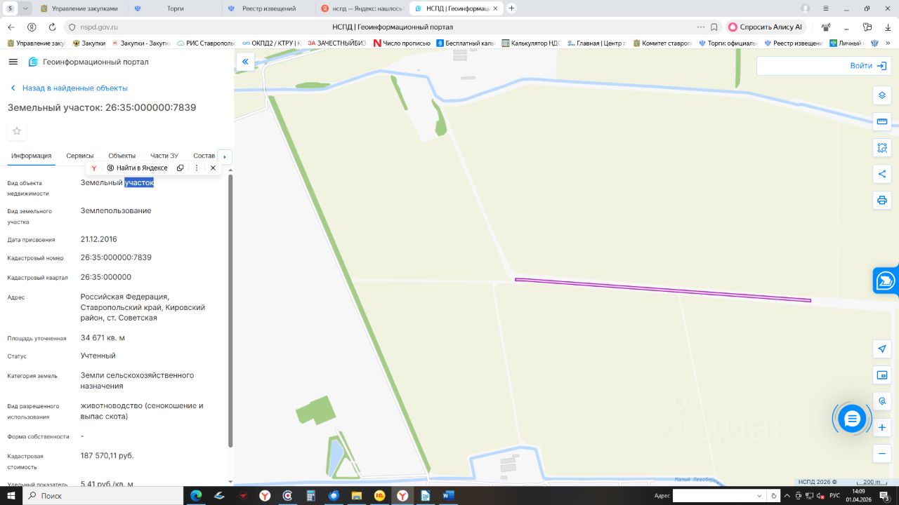 вид разрешенного использования: животноводство (сенокошение и выпас скота), категория земель: земли сельскохозяйственного назначения. Местоположение: Российская Федерация, Ставропольский край, Кировский район, ст. Советская