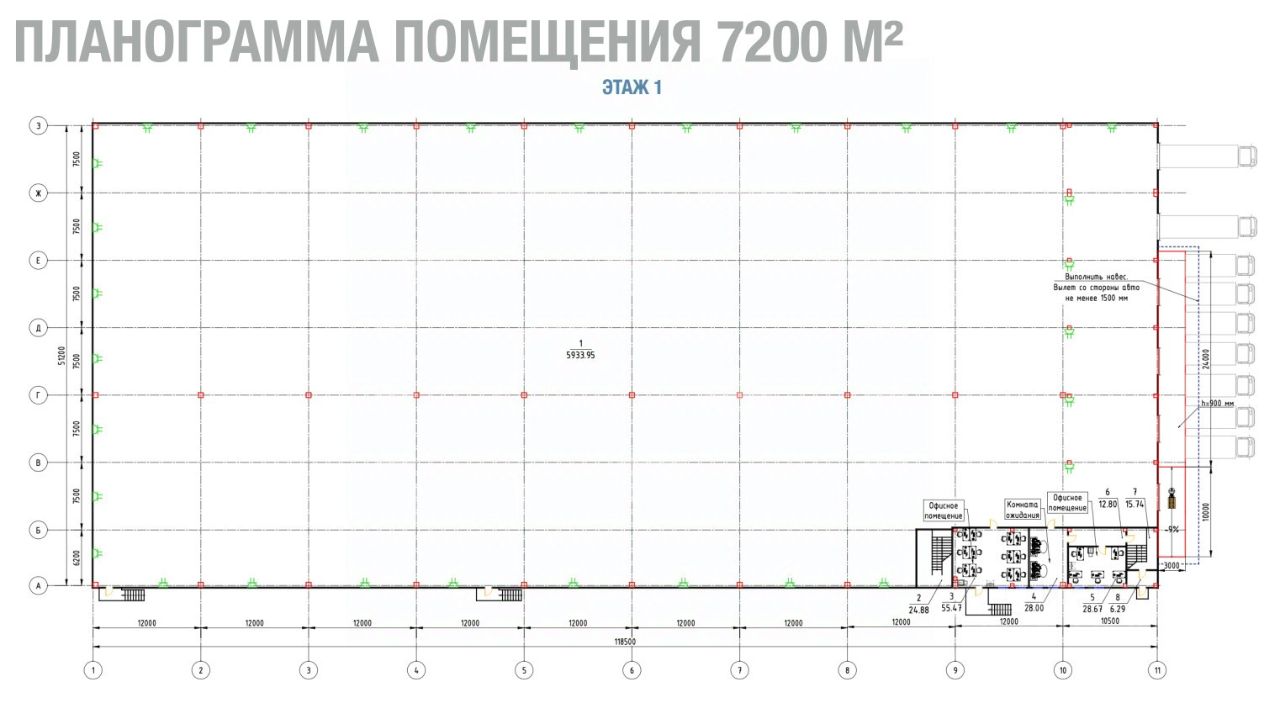 Сетка колонн: 12 24 м.