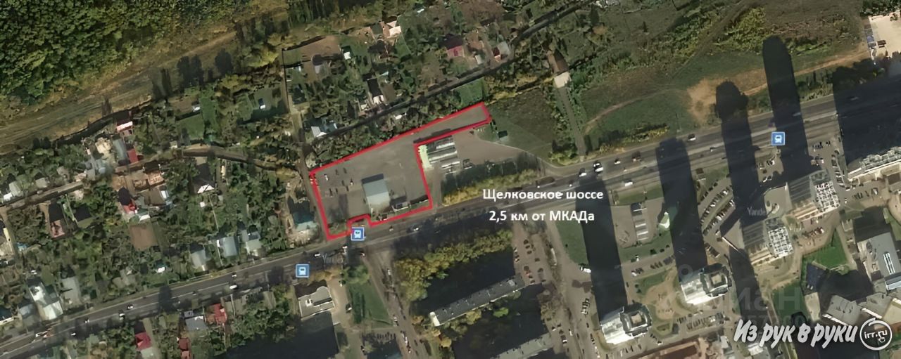 Площадка расположена вдоль щелковского шоссе. К участку примыкает АЗС. Рядом автобусная остановка, перекресток оснащен светофором, пешеходный переход. Хорошая видимость объекта.