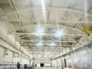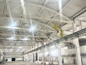 - Производственное помещение 1 размером 102,5х12м, высота до ферм 7-8м, крыша 8-9м, установлены две кран-балки г/п 5т.