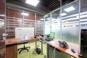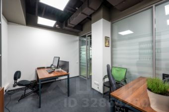 Планировка: open space, кабинеты, переговорные (установлены стеклянные перегородки), переговорные кабинки, серверная, кухня, туалет.