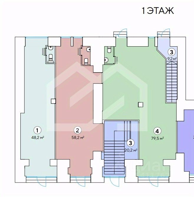 1160484. Предлагаем помещение свободного назначения, площадью 58.2 кв. м, расположенное на первом этаже 9-этажного жилого дома.