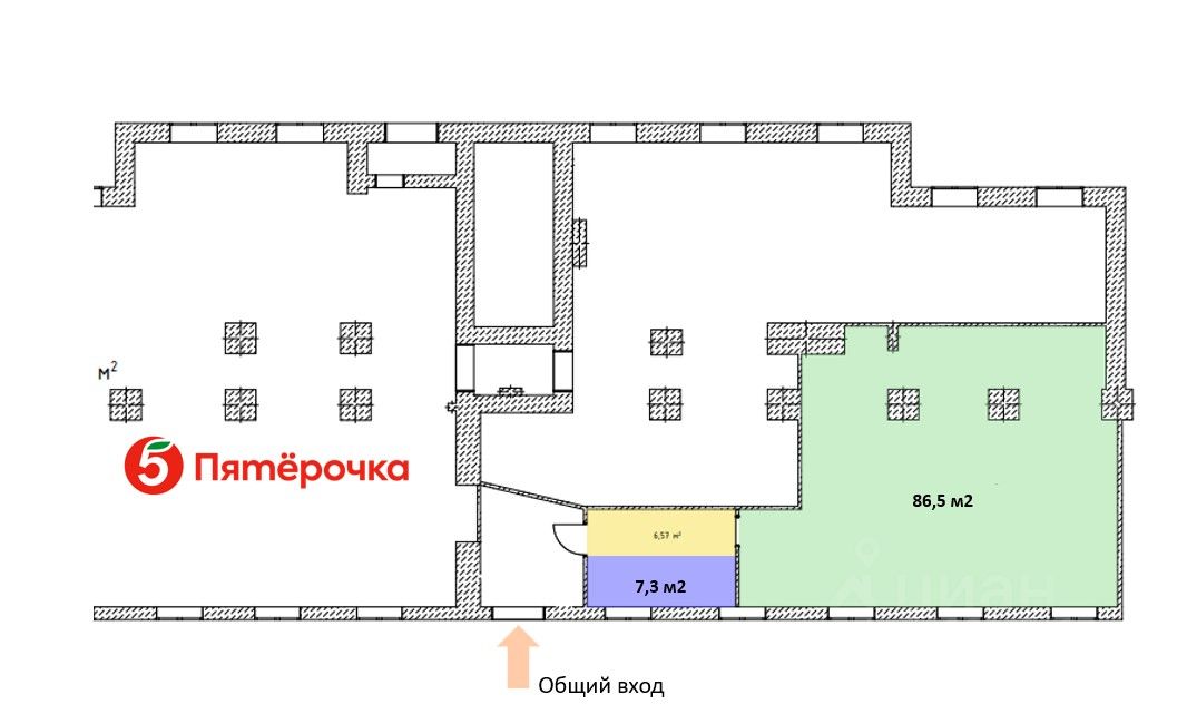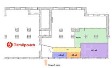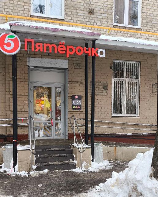 Вход с улицы общий единым тамбуром с супермаркетом Пятерочка.