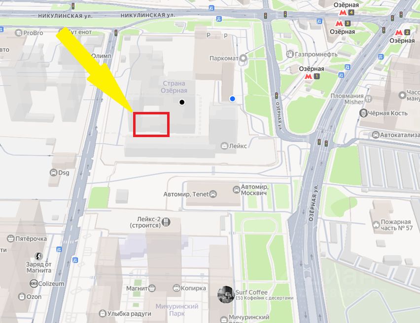 Вход со стороны БЦ Лейкс. Через помещение проходит кратчайшая дорого от следующей очереди ЖК Мичуринский парк от ПИК до метро Озерная!