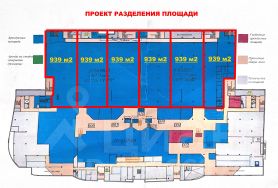 Общая площадь 5637,1 м2. Цокольный этаж. Разделена на два равных по площади помещения. Возможна сдача в аренду от 500 м2.
