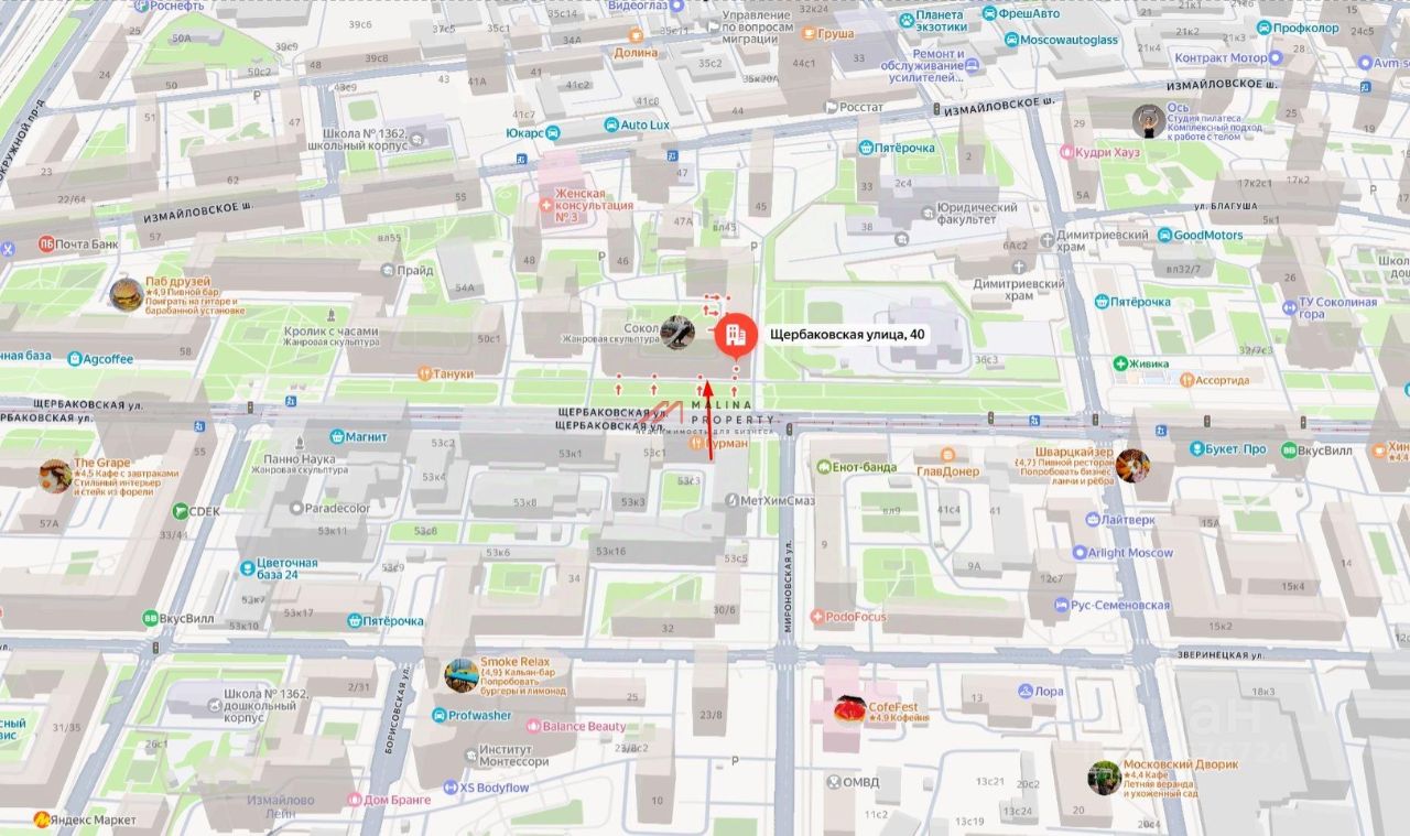 Аренда торгового помещения 107,5 м2 на ул. Щербаковская, д. 40 (10 минут пешком от метро Семеновская). 1-я линия домов.