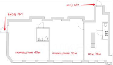 Помещения 35 и 40м смежные, помещение 25м отделено железной дверью с замком, имеет отдельный вход и с/у, оборудовано мини-кухней.