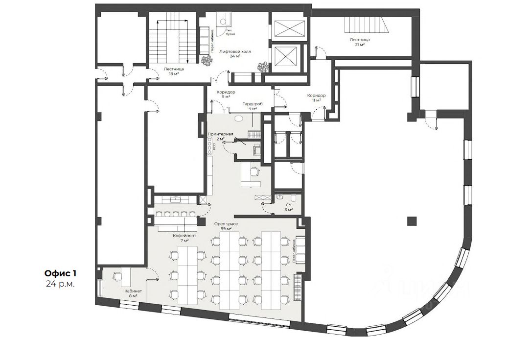 Предлагаем к аренде офис 121 м² на 7 этаже. Ваш офис в БЦ Композиторская 17 может работать круглосуточно.
