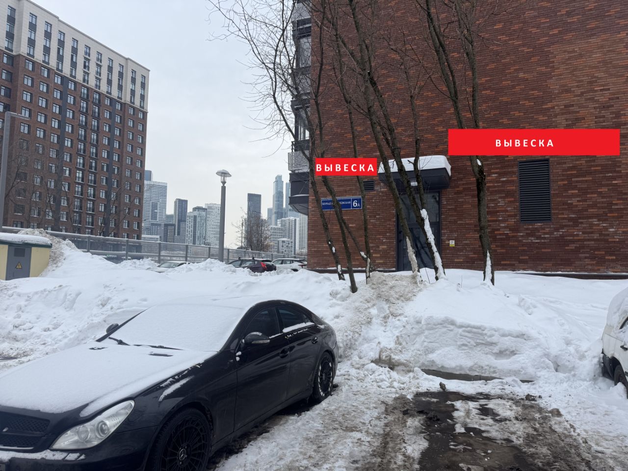 Отличный обзор входа в помещение и будущей вывески как от соседних домов, так и с противоположной стороны улицы, где находится квартал ONLY , ТЦ и БЦ.