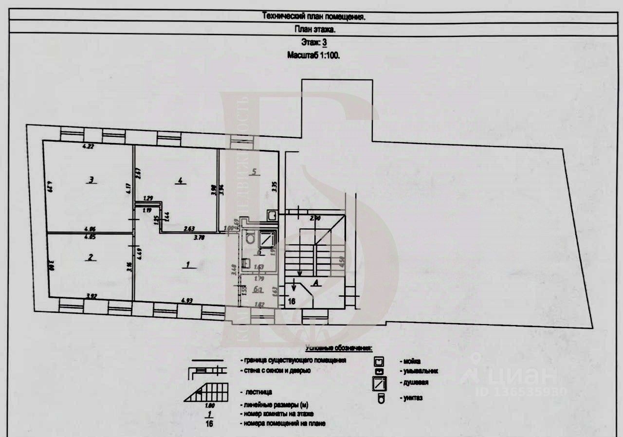 Общая площадь 78,1 кв.м. Третий этаж административного здания.