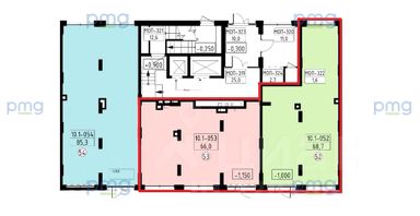 Или деление на 2 помещения (66 м² и 68,7 м²)