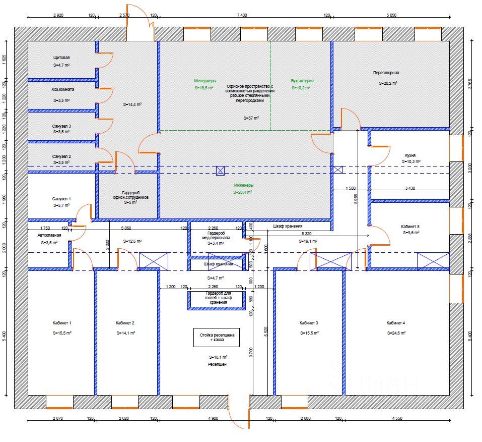 - офис 57 м2 для менеджеров, бухгалтерии, инженеров;
