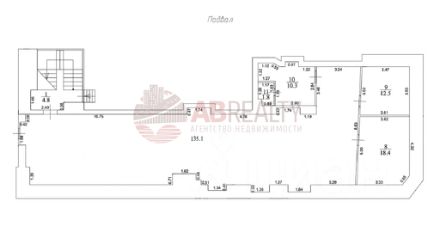 Планировка: 1 этажа 295,9 кв.м, антресоль 94,6 кв.м, подвал - 191 кв.м.