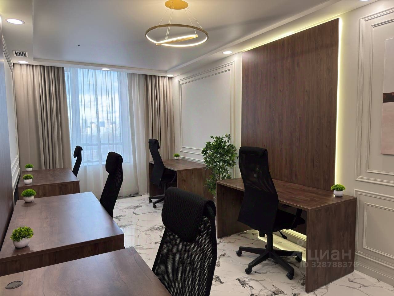 Панорамные окна с приятным видом на город, много естественного света и комфортная рабочая атмосфера.