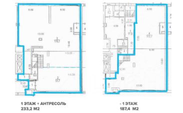 Помещение оборудовано и ранее использовалось под ресторан, есть вытяжка, электричество 100 кВт, удобный подъезд. Общая площадь - 420,6 кв.м (1-й этаж 233 кв.м, цоколь 187 кв.м).