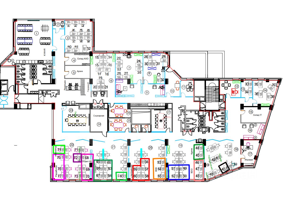 Эксклюзив! Предлагаем в субаренду офис на 100 сотрудников в бизнес-центре "Риверсайд Тауэрс".