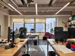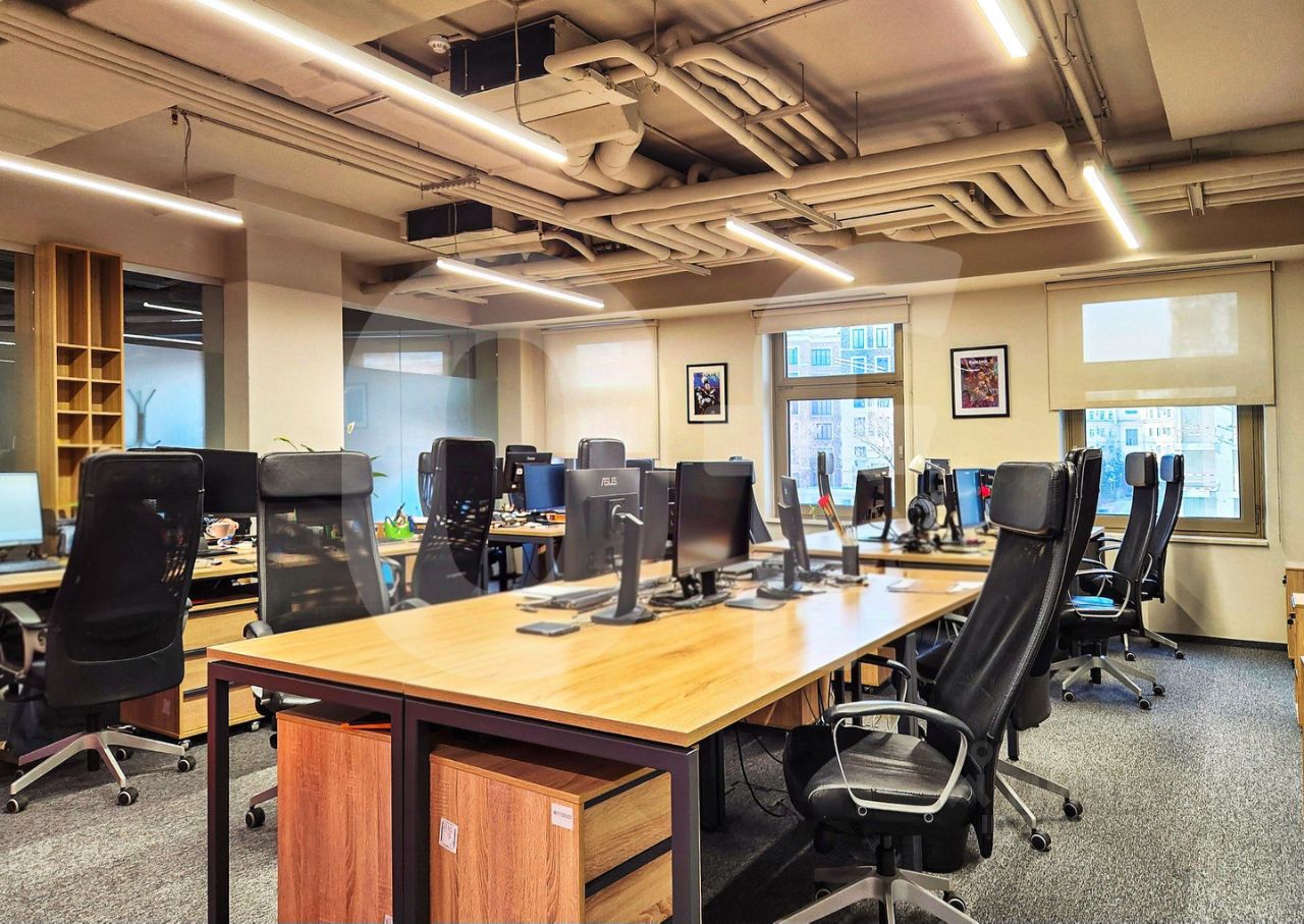 Помещение с функциональной смешанной планировкой. Свежий ремонт, полностью меблирован. Кухня-трансформер (превращается в конференц-зал), несколько переговорных, 2 группы санузлов в блоке.