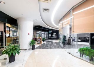 Первый этаж занимает торговая галерея площадью 7946 кв. м с магазинами, ресторанами и кафе. В центральном холле размешена служба ресепшн.