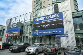 Отдельный вход с улицы, панорамные окна, вывеска на фасаде. Вокруг плотный жилой массив района, развитая инфраструктура. Высокий пешеходный и автомобильный трафик.