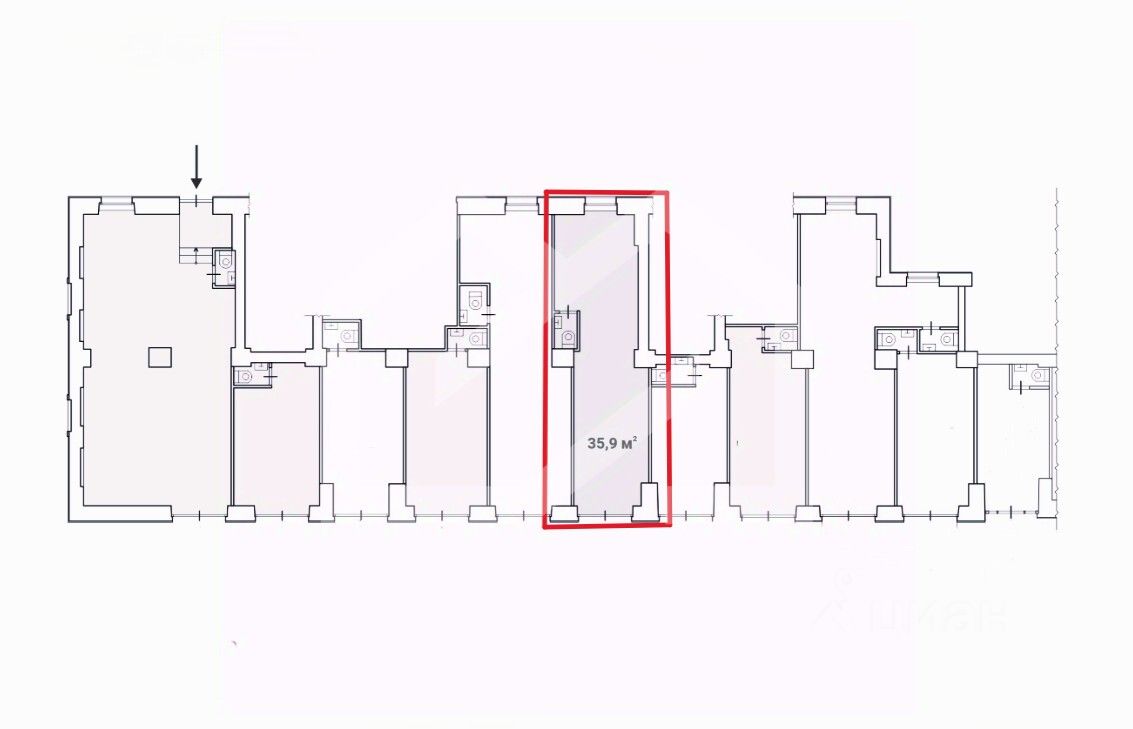 636158. Предлагаем помещение свободного назначения, площадью 35.9 кв. м, расположенное на первом этаже 4-этажного жилого дома.