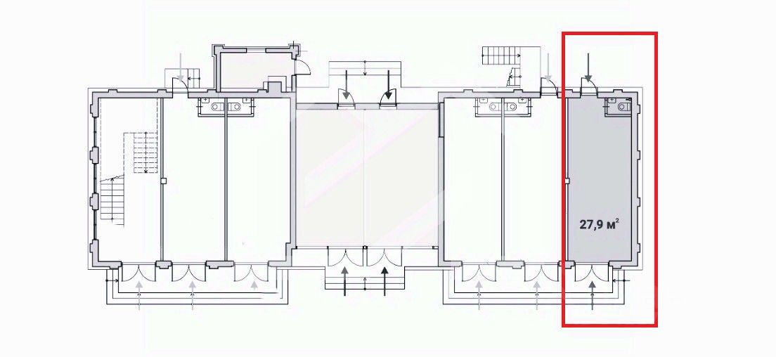 724437. Предлагаем помещение свободного назначения, площадью 27.9 кв. м, расположенное на первом этаже 2-этажного административного здания.