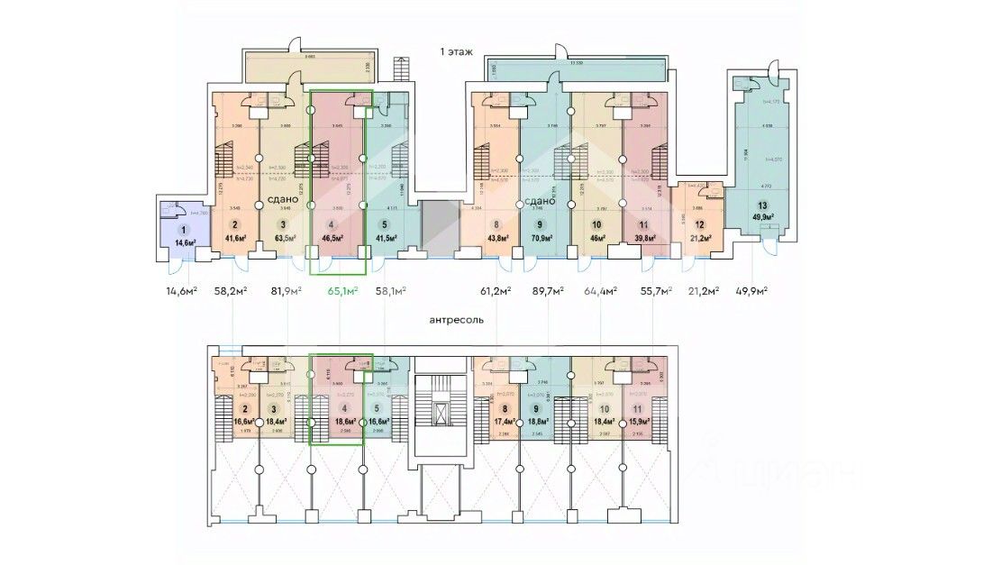 739217. Предлагаем торговое помещение, площадью 65,1 кв. м., расположенное на первом этаже и антресоли жилого дома.