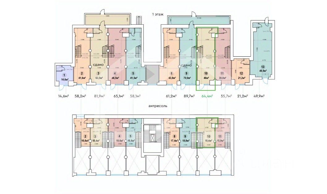 814241. Предлагаем торговое помещение, площадью 64,4 кв. м., расположенное на первом этаже и антресоли жилого дома.