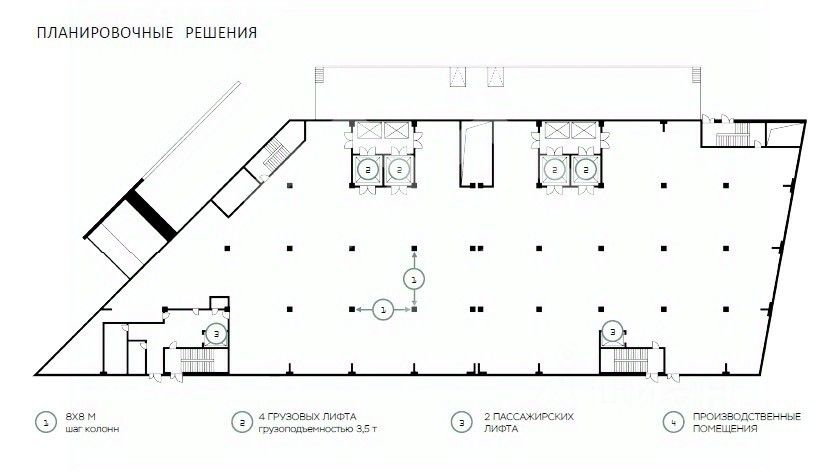 Сетка колонн: 8*8.