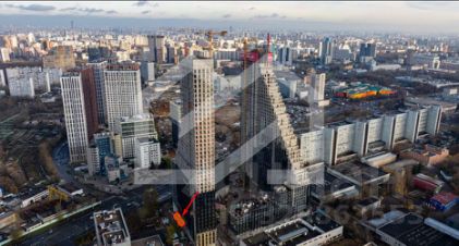 -ЖК состоит из 2 корпусов переменной этажности (от 45 до 57 этажей), рассчитанных на 1 805 квартир;