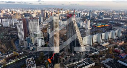 -ЖК состоит из 2 корпусов переменной этажности (от 45 до 57 этажей), рассчитанных на 1 805 квартир;