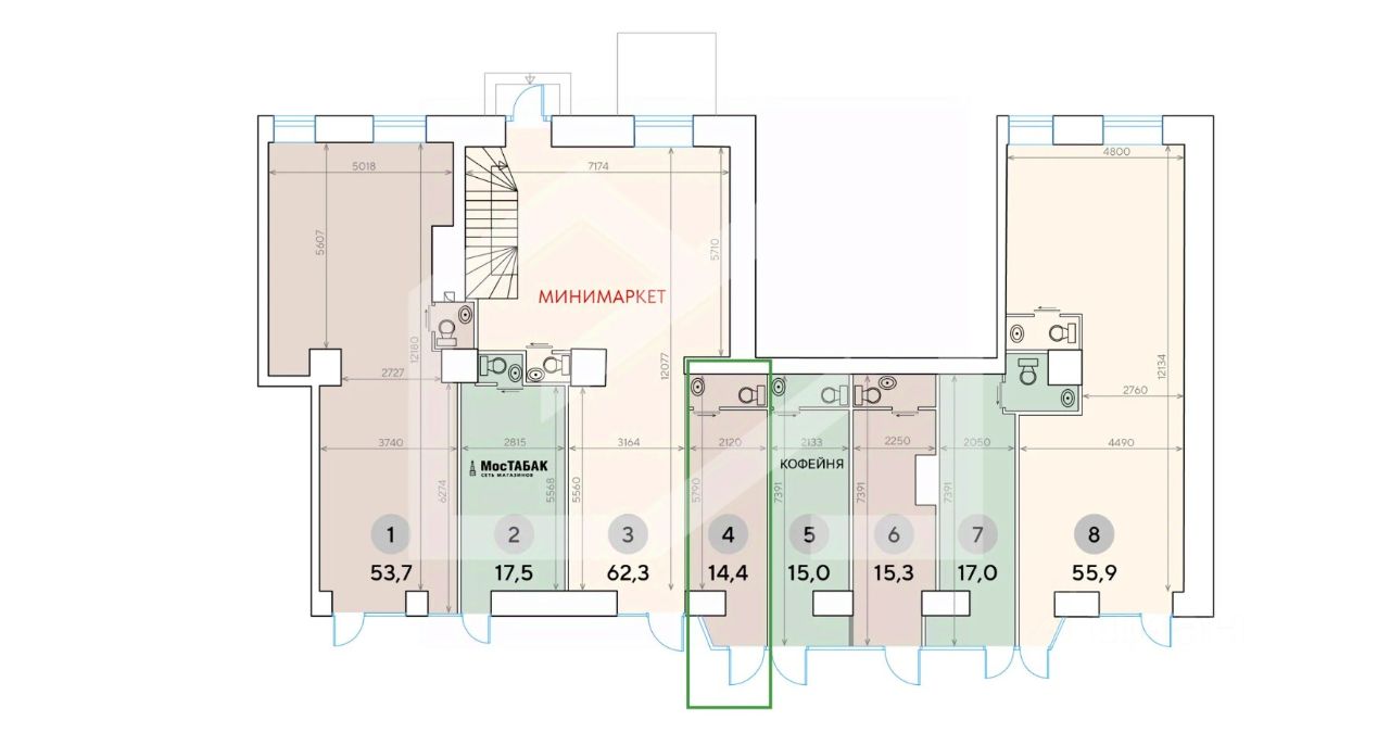 1011839. Предлагаем помещение свободного назначения, площадью 14,4 кв. м, расположенное на первом этаже 7-этажного жилого дома. Блок 4.