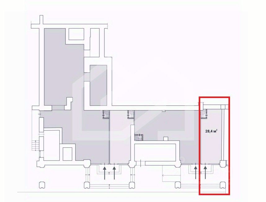 1022286. Предлагаем помещение свободного назначения, площадью 28.4 кв. м, расположенное на первом этаже 14-этажного жилого дома.