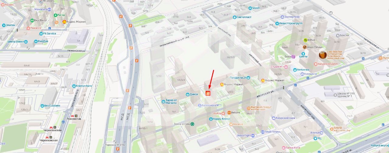 -8 минут пешком от станций метро Черкизовская и МЦК Локомотив;