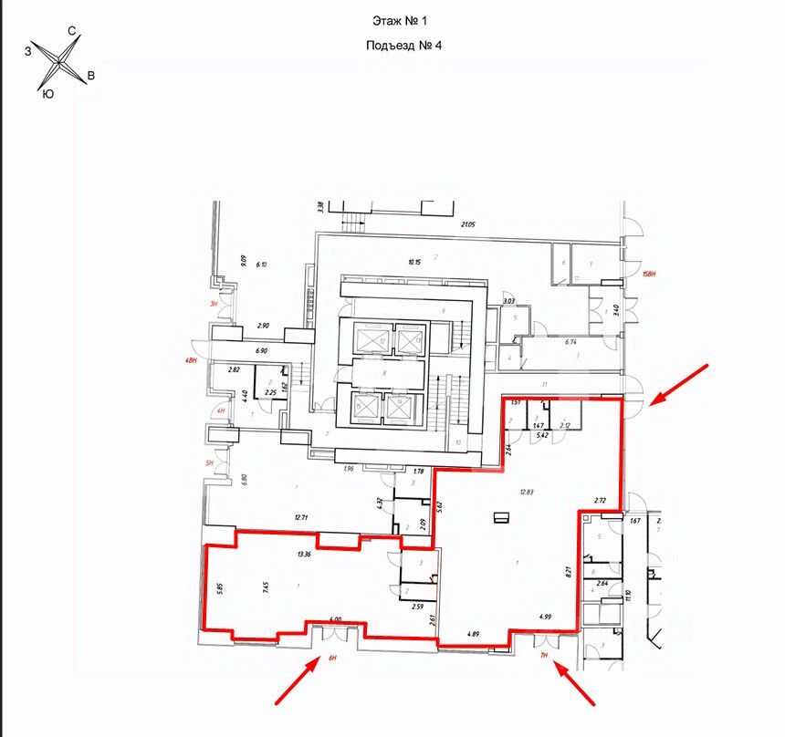 1135729. Предлагаем помещение свободного назначения в ЖК "Архитектор", площадью 264 кв. м, расположенное на первом этаже 47-этажного жилого дома.
