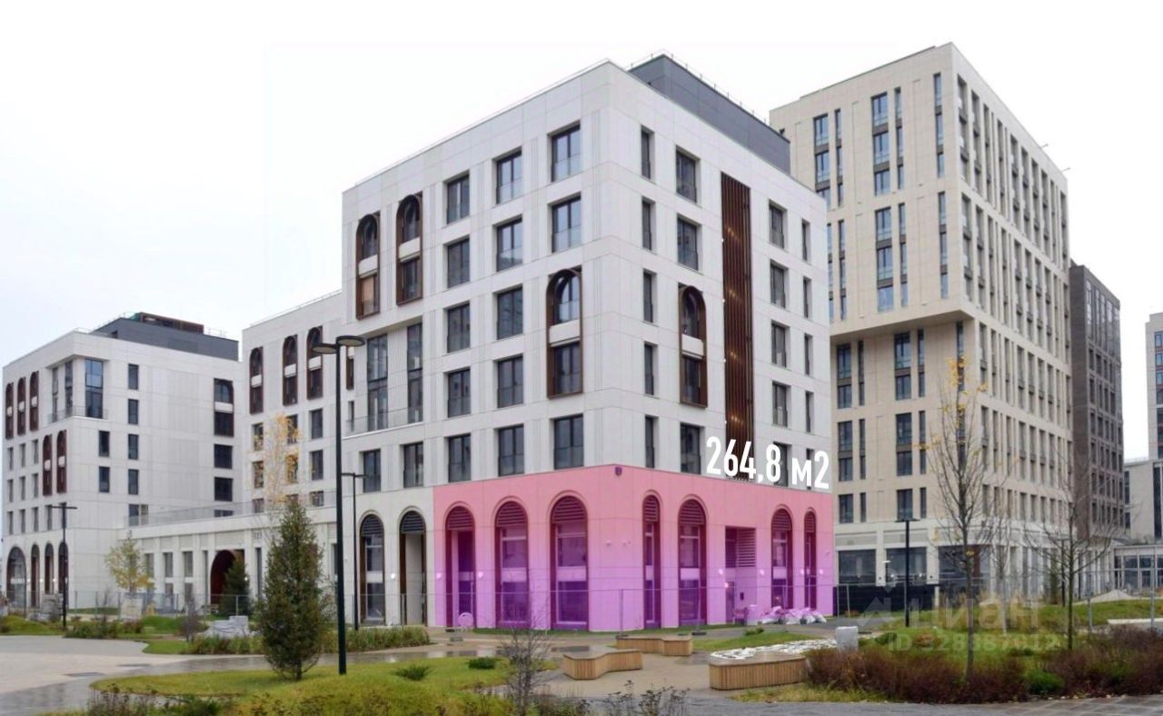 ЖК SHAGAL, корпус 7. Помещение свободного назначения, формат Street Retail. Общая площадь 264,8 м², помещение расположено на 2 уровнях: