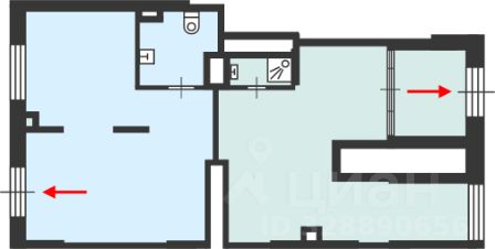 Общее помещение делится на 2 части с отдельными входами.