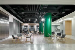В здании расположено несколько кафе и ресторанов, магазины, фитнес-клуб World Class.