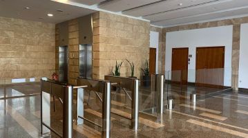- В центральном вестибюле, размещены две лифтовые группы, каждая из которых оснащена двумя высокоскоростных лифтов;