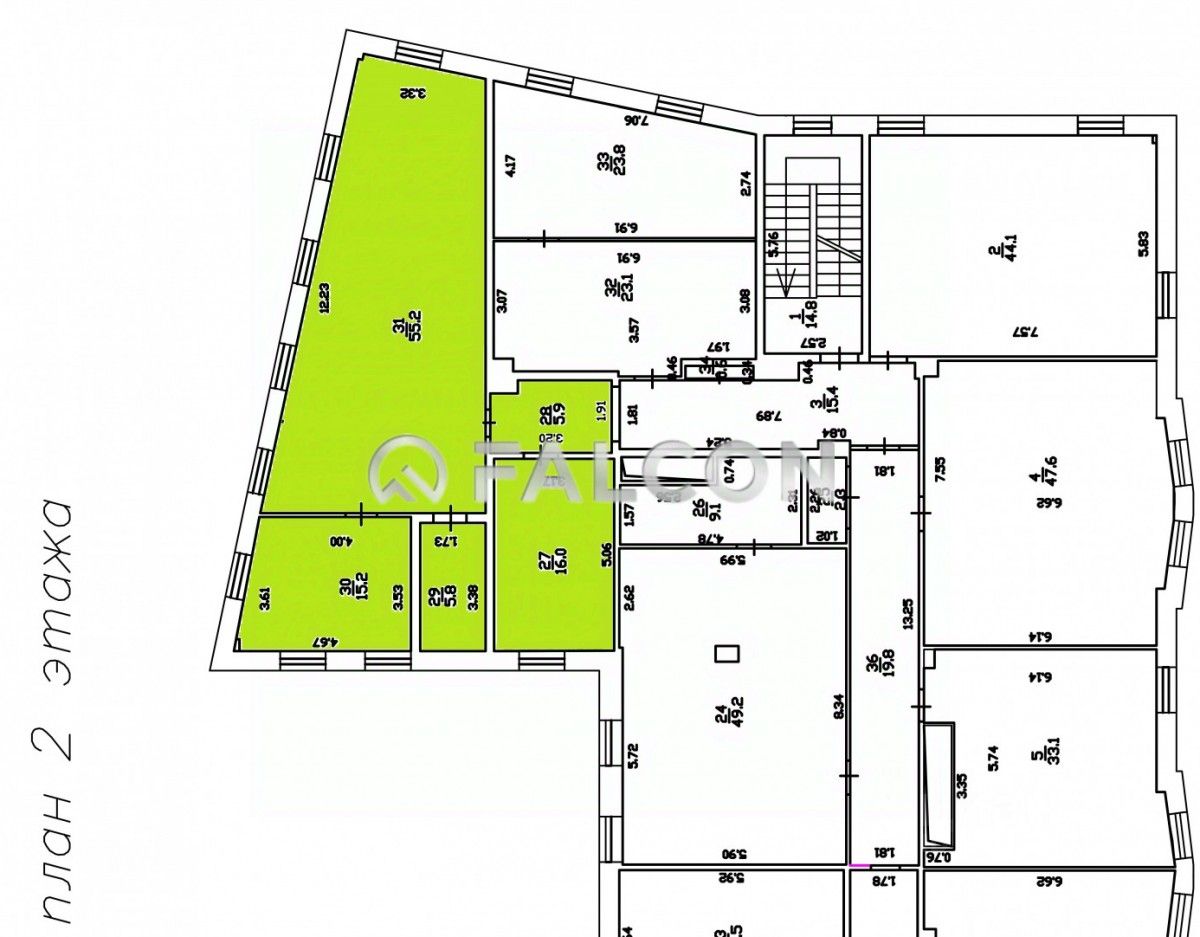 Офис состоит из помещения опен-спей, 2 кабинета и серверной, с/узел на этаже.