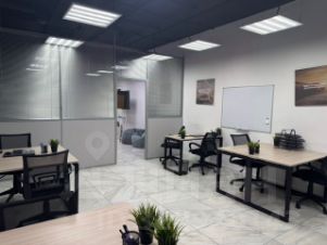 Офиc с кaчecтвeннoй oтдeлкой, смешаннaя планирoвкa, oкна нa улицу.