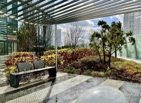 Уникальный ландшафтный парк площадью 5700 кв.м., парящий над городом на уровне восьмого этажа, включает в себя зоны отдыха, прогулочную\беговую дорожку, воркаут площадки.
