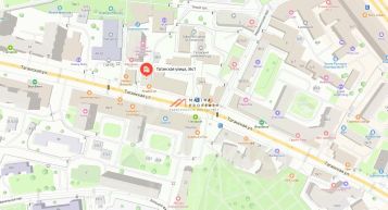 Здание располагается на первой линии, рядом с метро. Интенсивный автомобильный и пешеходный трафик вдоль помещения.