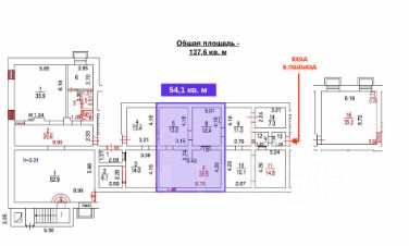- общая площадь - 54,1 кв. м (три кабинета);