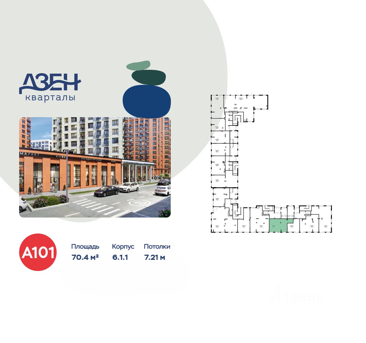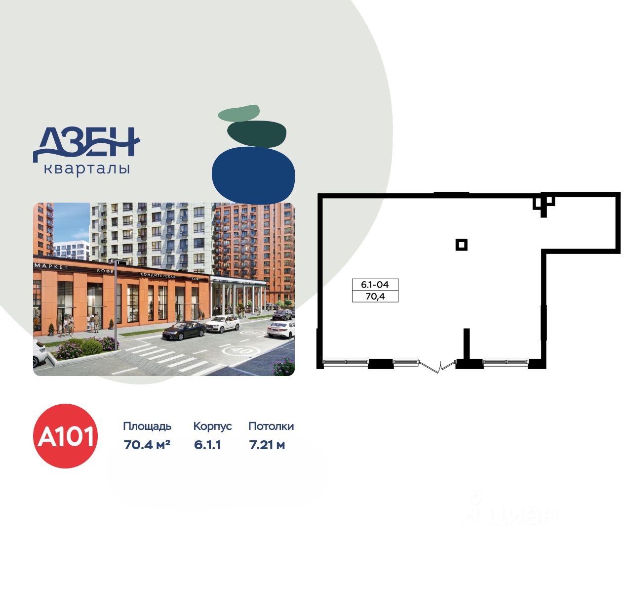 Сдается помещение площадью 70.40. на 1-м этаже ЖК "Дзен-кварталы".