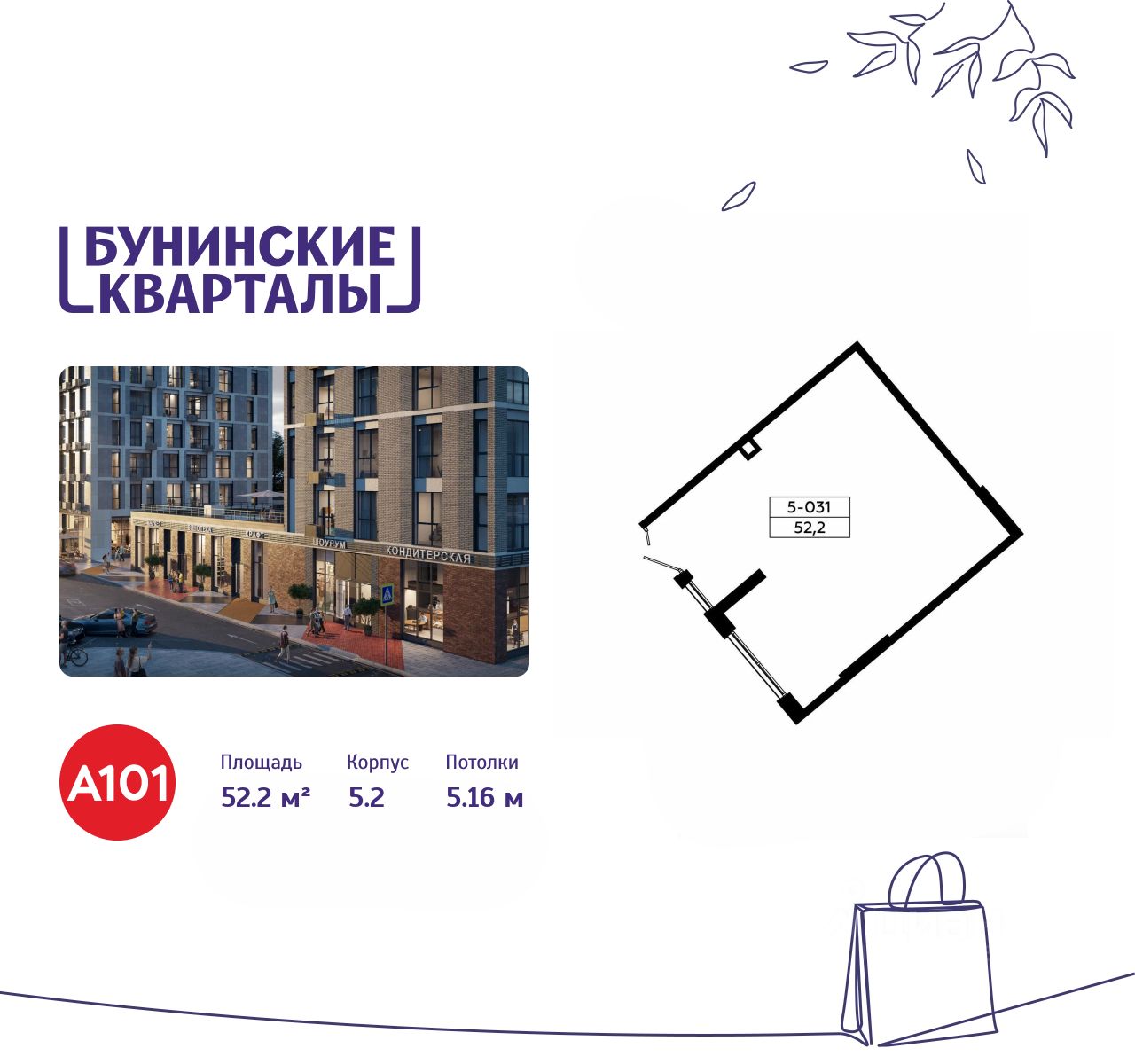 Сдается помещение площадью 52.20. на 1-м этаже ЖК "Бунинские кварталы".
