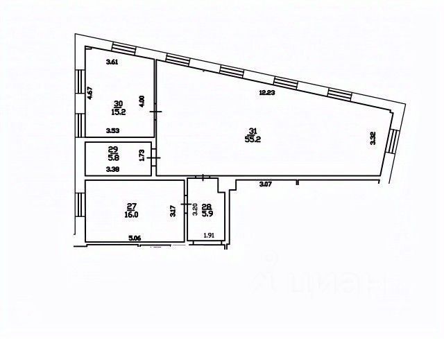 Описание помещения: Офисное помещение состоит из зоны open-space, нескольких кабинетов, серверной. Выполнена стандартная офисная отделка.